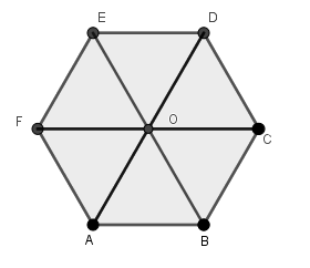 Question 46. Cho lục giác đều ABCDEF tâm O. Có bao nhiêu vectơ bằng $\vec{AB}$ và có điểm đầu và điểm cuối là O và các đỉnh của lục giác?