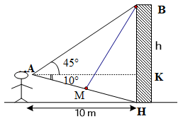 Câu 14. Một người quan sát đứng cách một cái tháp 10m, nhìn thẳng cái tháp dưới một góc $55^\circ$ và được phân tích như trong hình. Các mệnh đề sau đúng hay sai?
