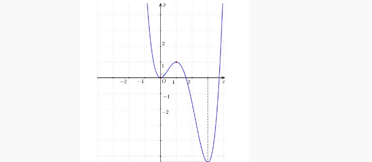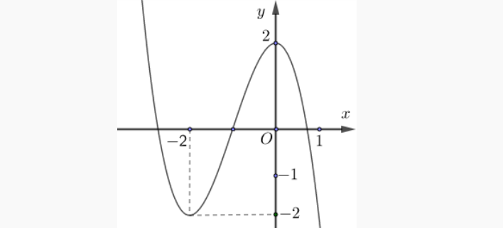 Question 54. Cho hàm số đa thức bậc bốn $y=f(x)$ thỏa mãn $f(0)=\dfrac{1}{2}$, hàm số $f'(x)$ có đồ thị như hình vẽ.