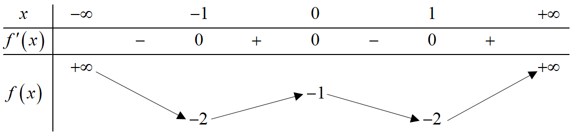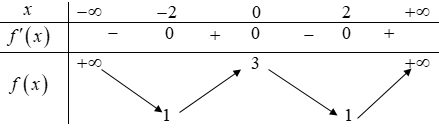 Question 20. Cho hàm số bậc bốn trùng phương $f(x)$ có bảng biến thiên như sau: