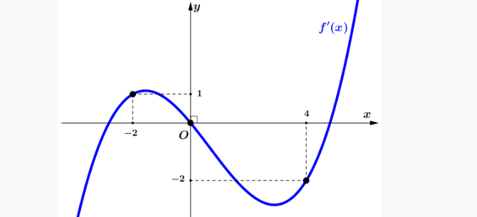 Question 52. Cho hàm số bậc bốn $y=f(x)$ có đồ thị hàm số $y=f'(x)$ như hình vẽ bên.