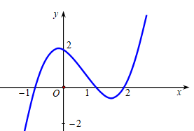 Question 1. Cho hàm số bậc ba $y = f(x)$ có đồ thị là đường cong trong hình dưới đây.