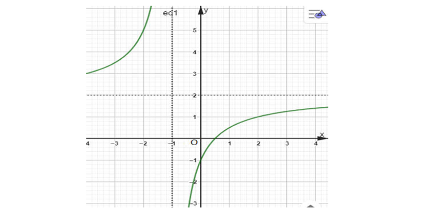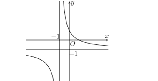 Question 75. (Sở Long An 2025) Cho hàm số $y=\dfrac{ax+b}{cx+d}$ ($c \ne 0, ad-bc \ne 0$) có đồ thị như hình vẽ bên.