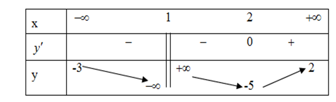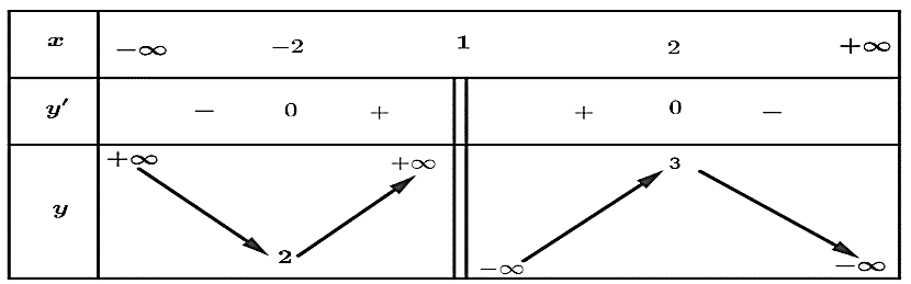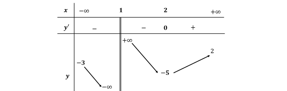 Question 74. (Sở Quảng Nam 2025) Cho hàm số $y=f(x)$ xác định trên $\mathbb{R} \setminus \{1\}$, liên tục trên mỗi khoảng xác định và có bảng biến thiên như sau: