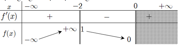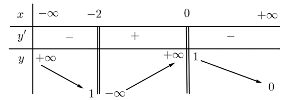 Question 19. (THPT Nguyễn Khuyến - Lê Thánh Tông 2025) Cho hàm số $f(x)$ xác định trên $(-\infty;0) \setminus \{-2\}$ và có bảng biến thiên bên dưới. Đồ thị hàm số đã cho có tổng số đường tiệm cận ngang và tiệm cận đứng là