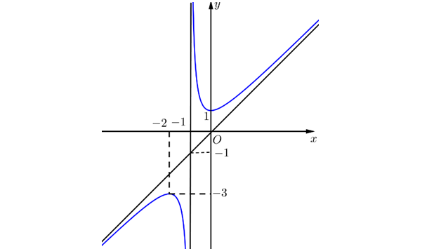 Question 69. ((Sở Hòa Bình 2025) Đồ thị hàm số $y=f(x)=\dfrac{x^2+2x-3}{x+1}$ có đường tiệm cận xiên là