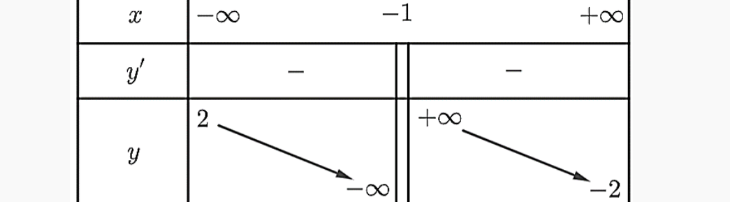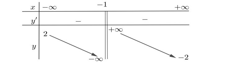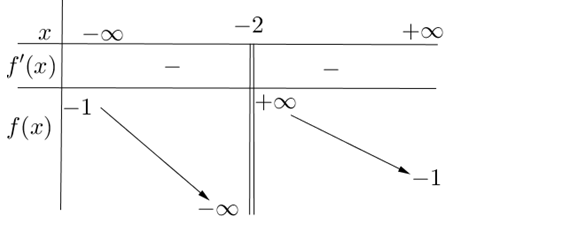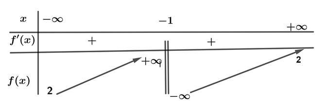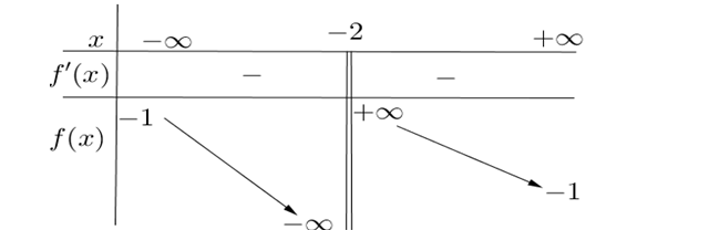 Question 66. (Chuyên Phan Bội Châu - Hà Tĩnh 2025) Cho hàm số $y=f(x)$ xác định trên $\mathbb{R} \setminus \{-1\}$ có bảng biến thiên như hình bên