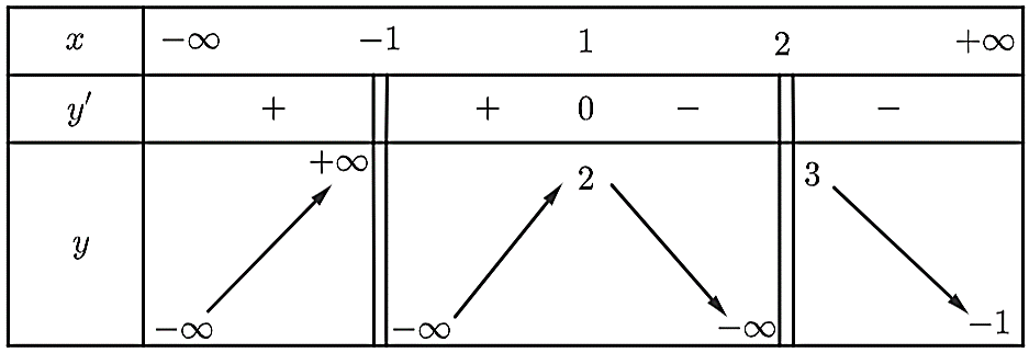 Question 145. Cho hàm số $y=f(x)$ có bảng biến thiên như hình vẽ