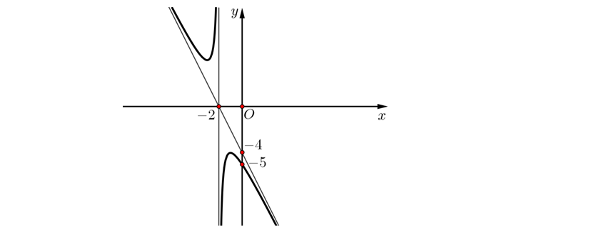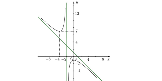 Question 48. (HSG Vũng Tàu 2025) Cho hàm số $y=\dfrac{x^2+3x-8}{x-2}$ (1) và đường tròn (C): $(x+3)^2+(y-1)^2=4$. Gọi I là tâm đường tròn (C).