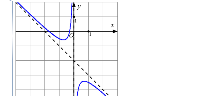 Question 41. (Sở Ninh Bình 2025) Cho hàm số $y=f(x)=\dfrac{ax^2+bx+c}{x+d}$ có đồ thị là đường cong trong hình vẽ dưới đây, biết đường tiệm cận xiên của đồ thị hàm số đi qua hai điểm (0;1) và (1;0).