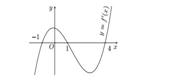 Question 17. (Chuyên Lam Sơn - Thanh Hóa 2025) Cho hàm đa thức $y=f(x)$ có đồ thị của hàm số $y=f'(x)$ là đường cong trong hình vẽ bên.