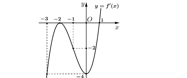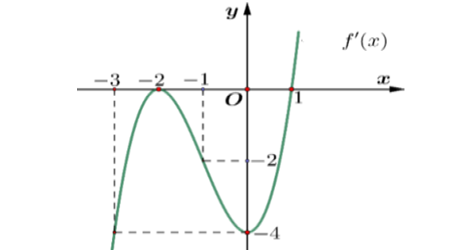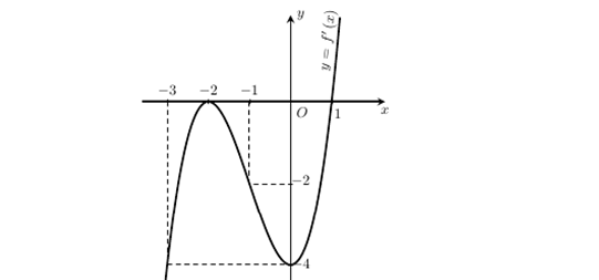 Question 27. (HSG Hải Phòng 2025) Cho hàm đa thức $y = f(x)$ có đồ thị của hàm số $y=f'(x)$ là đường cong trong hình vẽ bên.