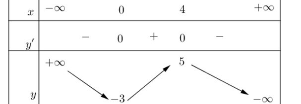 Question 4. (Chuyên Thái Bình 2025) Cho hàm số $y=f(x) = ax^3+bx^2+cx+d$ có bảng biến thiên như hình vẽ