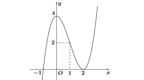 Question 10. (Sở Thái Nguyên 2025) Cho hàm số $y=f(x)=x^3+bx^2+cx+2$ đạt cực trị bằng 0 tại $x=1$ (với b và c là hằng số)