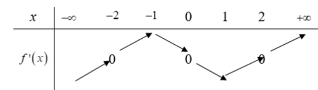 Question 12. (Đề thi vào ĐHSPHN 2025) Cho hàm số $y=f(x)$ liên tục trên $\mathbb{R}$, đạo hàm $f'(x)$ có đồ thị như hình sau: