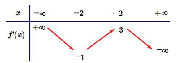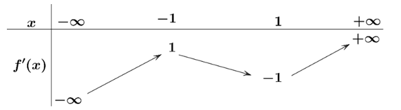 Question 7. (THPT Triệu Sơn 4 - Thanh Hóa 2025) Cho hàm số $y = f(x)$ có đạo hàm liên tục trên $\mathbb{R}$ và có bảng biến thiên của đạo hàm như hình vẽ. Đặt $g(x) = f\left(\dfrac{x^2+1}{x}\right)$. Tìm số điểm cực trị của hàm số $y = g(x)$.