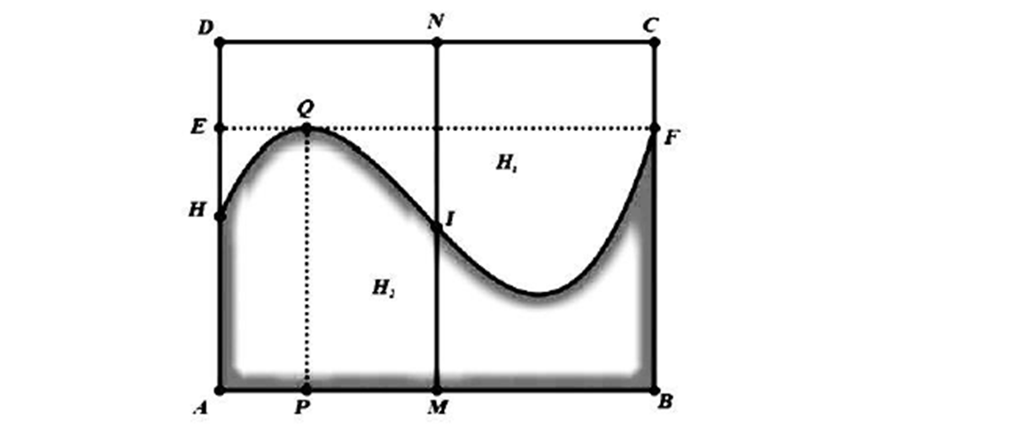 Question 21. (Sở Ninh Bình 2025) Khuôn viên của một công viên có dạng hình chữ nhật $ABCD$ với $AB = 100\,\text{m}; AD = 80\,\text{m}$. Người ta muốn chia công viên thành hai khu, một khu dành cho trẻ em, một khu dành cho người lớn. Để tạo thiết kế độc đáo và lạ mắt, người ta dùng một đường cong chia khuôn viên thành hai phần $H_1$ (không tô màu) dành cho trẻ em và $H_2$ (tô màu) dành cho người lớn như hình vẽ bên với $AH = 40\,\text{m}; AE = 60\,\text{m}; AP = 20\,\text{m}$ và $EF //AB; PQ//AD$. Biết rằng khi xét trong một hệ tọa độ $Oxy$, đường cong trong hình là một phần của đồ thị hàm số bậc ba. Phần chính giữa công viên người ta muốn mắc dây đèn trang trí dọc đoạn thẳng $MN$ như hình. Biết giá tiền mỗi mét dây trang trí của phần dành cho trẻ em là 140 nghìn đồng và phần dành cho người lớn là 180 nghìn đồng. Tổng số tiền mắc dây đèn trang trí trên đoạn $MN$ là bao nhiêu triệu đồng.