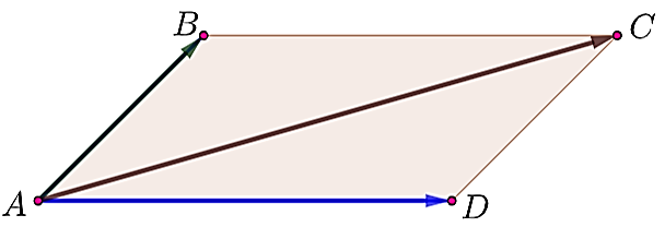 Nếu $ABCD$ là một hình bình hành thì ta có: $\vec{AB} + \vec{AD} = \vec{AC}$.