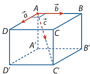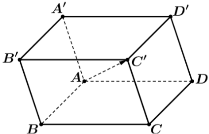 Cho hình hộp $ABCD.A'B'C'D'$, ta có: $\vec{AB} + \vec{AD} + \vec{AA'} = \vec{AC'}$.