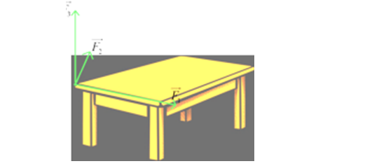 Question 107. (Sở Hà Tĩnh 2025) Có ba lực cùng tác động vào một cái bàn như hình vẽ. Trong đó hai lực $\vec{F_1}, \vec{F_2}$ có giá nằm trên mặt phẳng chứa mặt bàn, tạo với nhau một góc 110° và có độ lớn lần lượt là 9N và 4N, lực $\vec{F_3}$ vuông góc với mặt bàn và có độ lớn 7N. Độ lớn hợp lực của ba lực trên là $a(N)$, tìm giá trị của $a$. (kết quả quy tròn về số nguyên).
