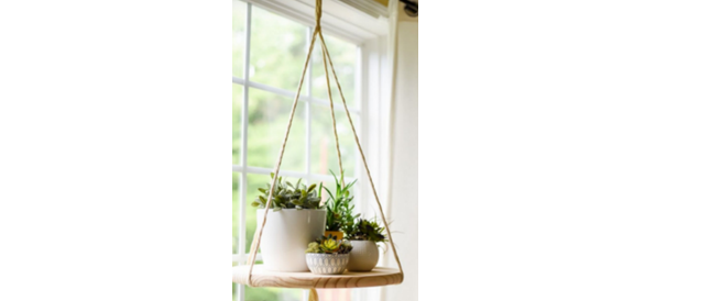 Question 108. (Chuyên Thái Bình 2025) Một giỏ hoa treo trong nhà làm bằng 3 sợi dây không giãn, mỗi sợi dài 60(cm) miếng kê là một miếng gỗ cân đối hình tròn bán kính 20(cm), ba sợi dây được thắt một đầu bên trên và đỡ giá gỗ tại 3 điểm tạo thành tam giác đều (giả sử mối thắt của 3 sợi dây và mối nối của mỗi sợi dây với miếng gỗ không đáng kể). Biết lực chịu đựng của mỗi sợi dây bằng nhau và mỗi sợi chịu không quá 15N trọng lượng của miếng giá gỗ là 5N. Tính trọng lượng tối đa của các chậu hoa để dây treo không bị đứt (đơn vị N, kết quả làm tròn đến hàng phần chục).